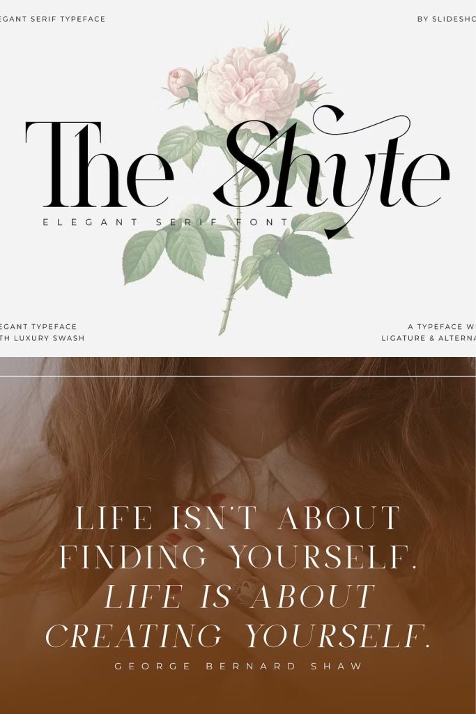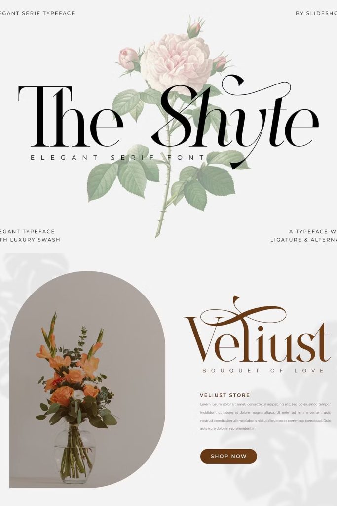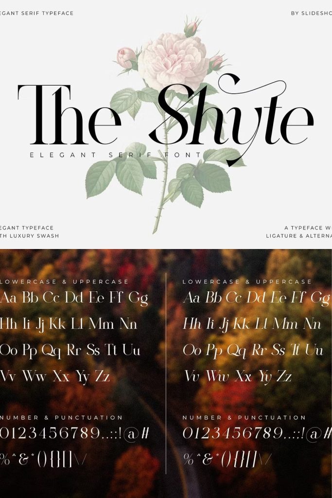 The Shyte Serif is a balanced, smooth, elegant and stylish serif font. This typeface has two main styles, Regular and Italic, which are designed to work elegantly in unison and separately. He has a beautiful character. Very suitable to be combined with invitation card designs, company logos, film titles, film names, business cards, book titles, brand names and various other designs. The Shyte Serif is a smooth serif font that exudes sophistication and elegance. Its stylish alternation and binding make this font the perfect partner for any project.