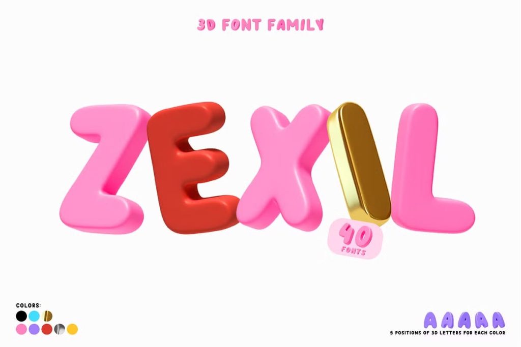 Create stunning visual impact with ZEXIL 3D fonts. Many ready-made color options, metallic and matte surfaces. 5 tilt options for each color. Easy to use at work. Just write your text and apply this font. Combine different letters and get an amazing visual effect. Have fun experiments)