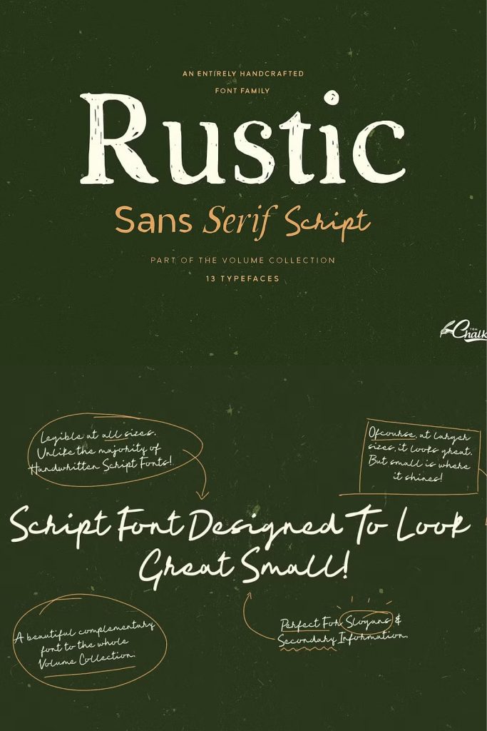 Introducing Rustic 13 Handcrafted fonts designed to complement one another beautifully, this collection is perfect for projects involving organic/handmade/local/human-centric products and services.