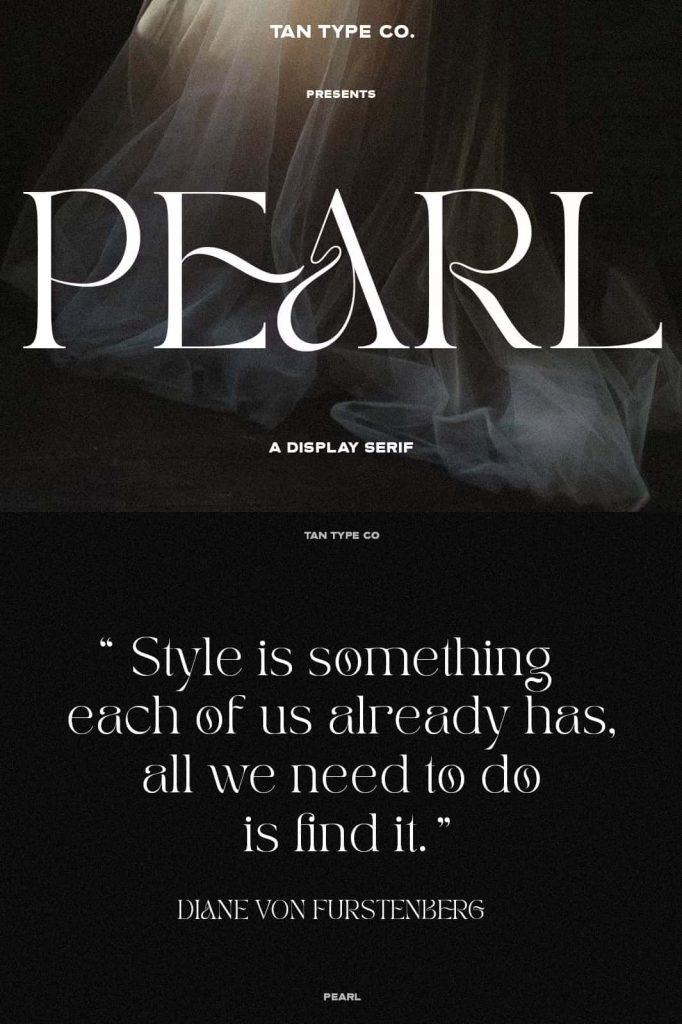 TAN – PEARL is a playful yet elegant serif. It teases your eyes with its curves yet still able to maintain its classy composure. Perfect for anything your creativity takes you. 🙂