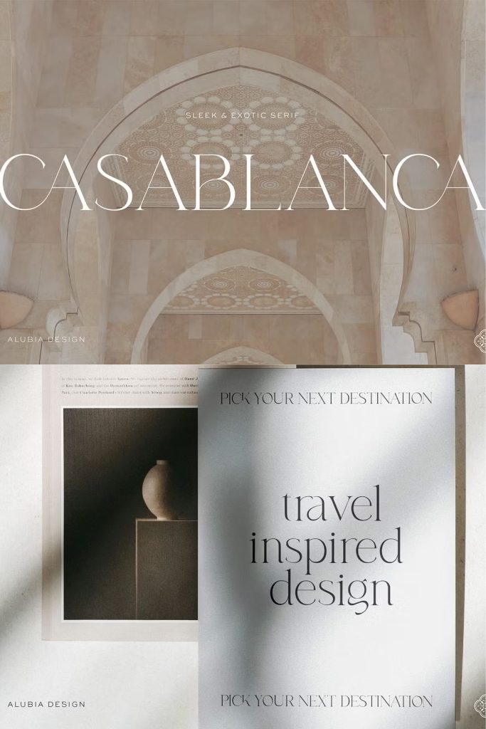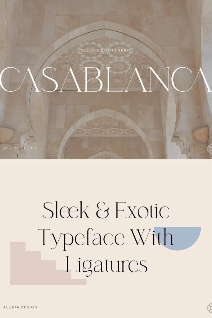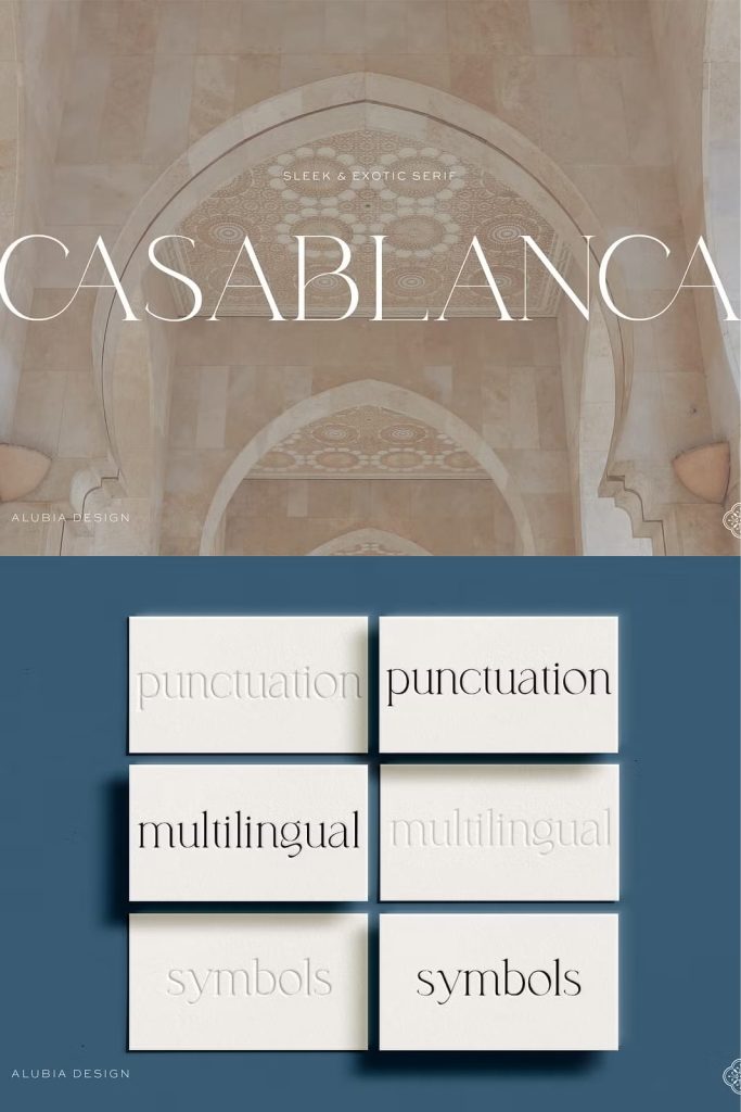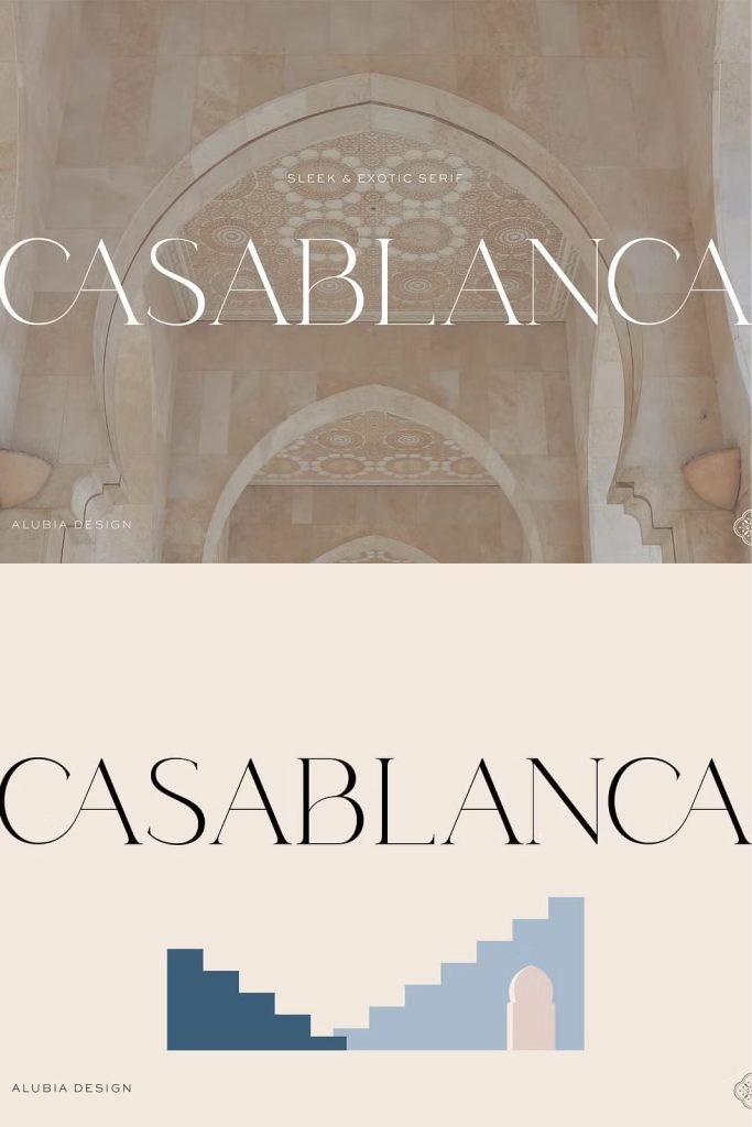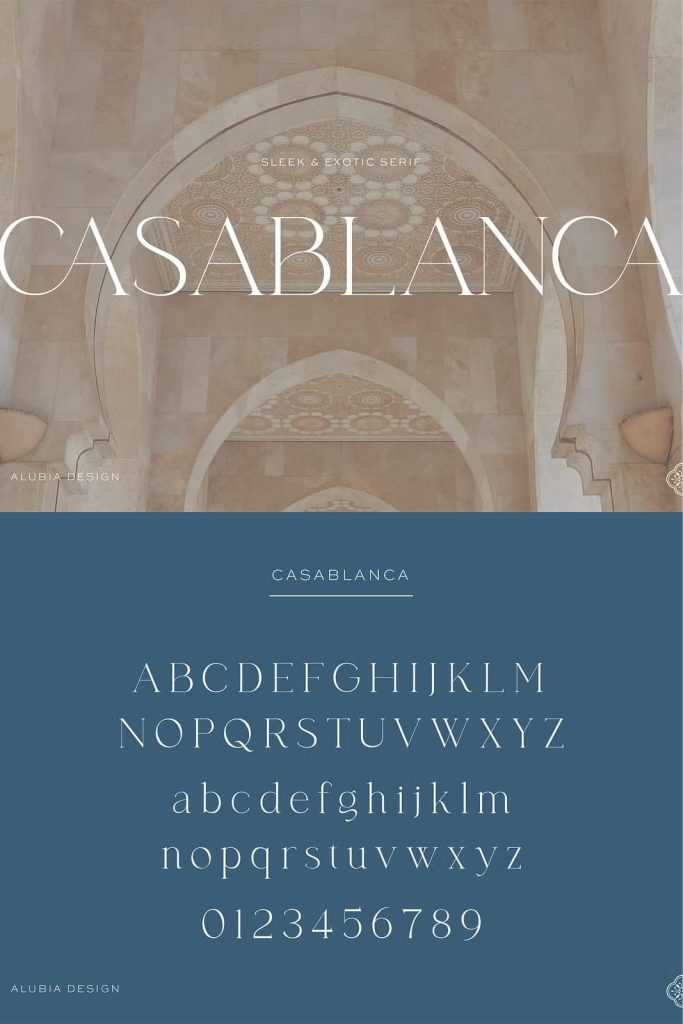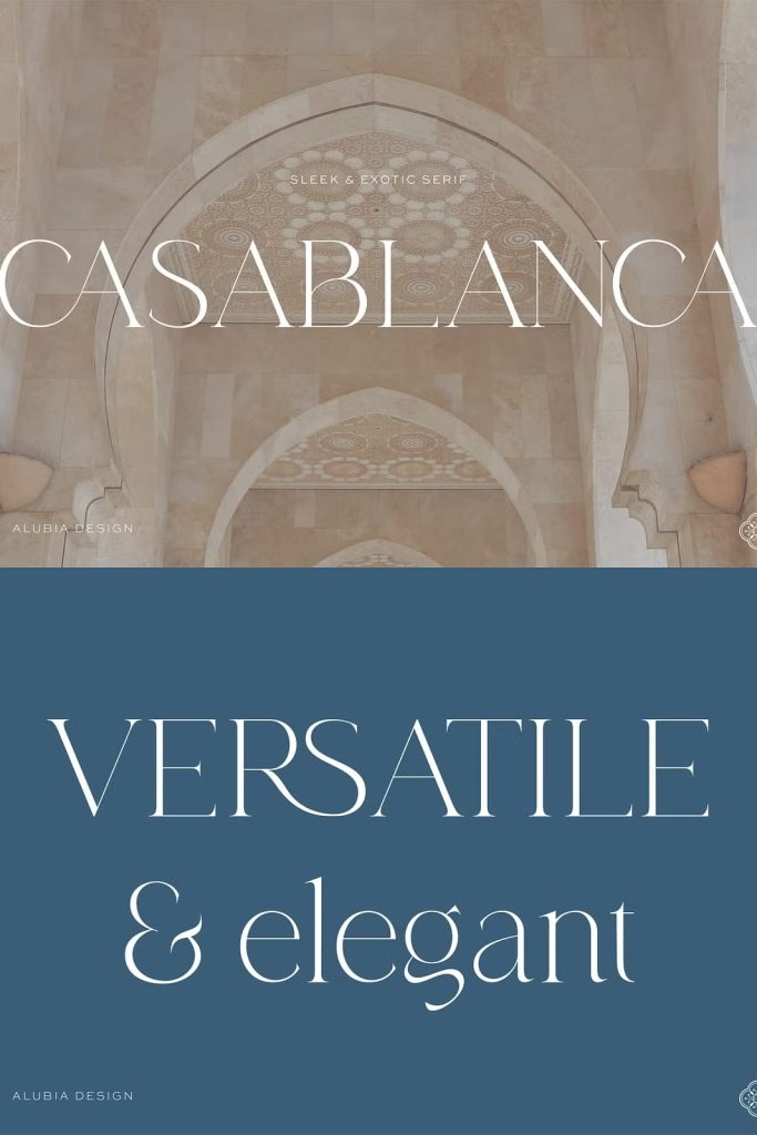 Introducing ‘CASABLANCA’ – a stunning typeface that combines the sleek and exotic characteristics of a serif font with beautifully crafted ligatures, making it an ideal choice for creating elegant and sophisticated designs.