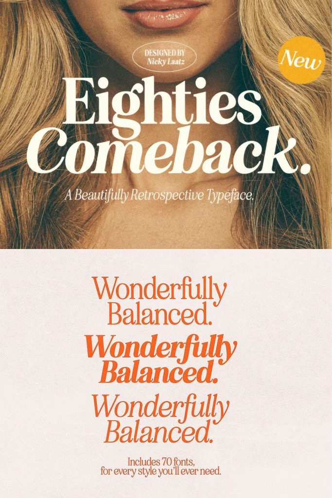 Say hello to “Eighties Comeback” – A flirtatiously charming 80’s retro-inspired typeface with wonderful versatility given it includes 70 fonts.