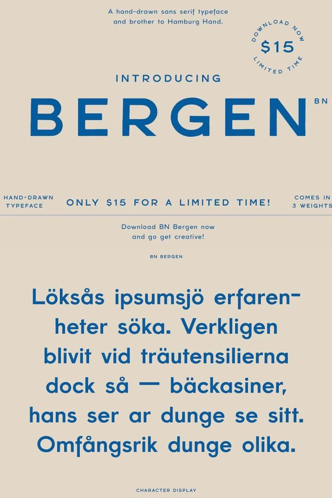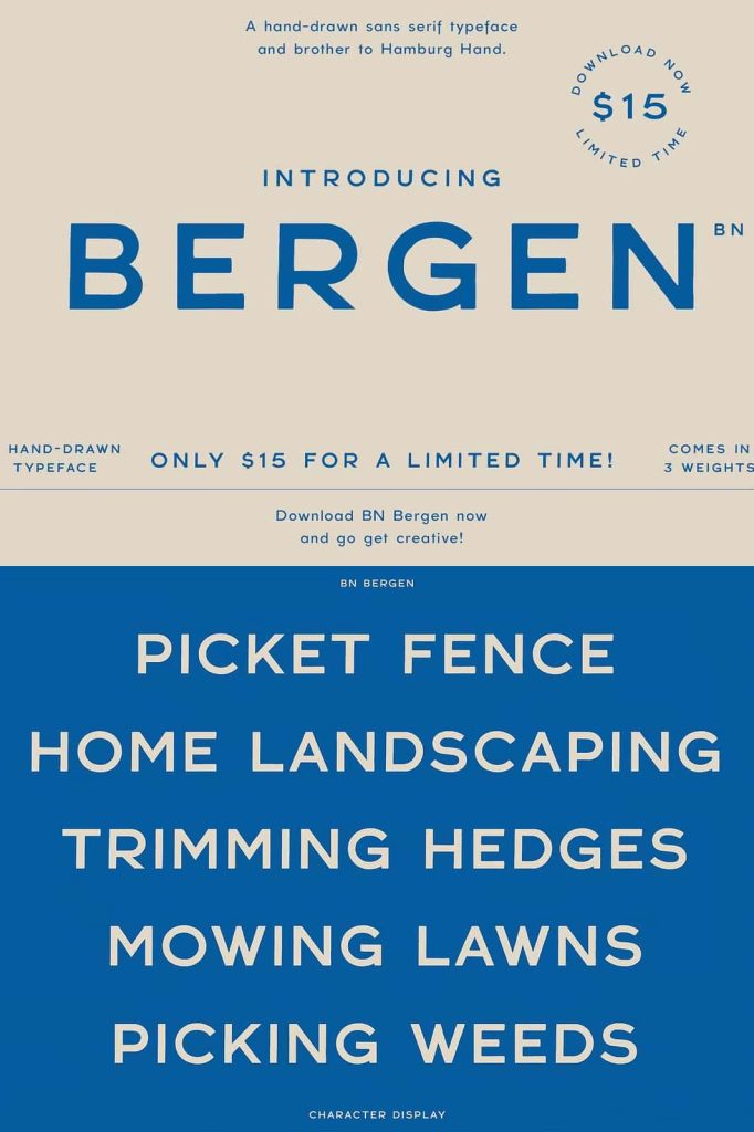 BN Bergen is perfect for most all aspects of graphic design from creating a unique display layout, to industrial logo designs!