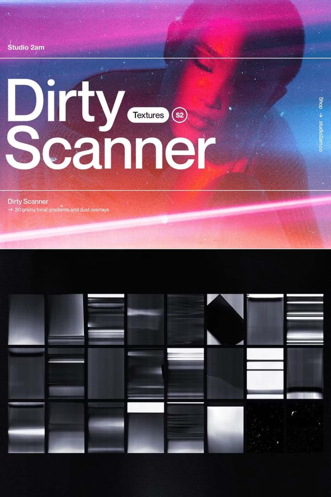 This pack of dirty scanner textures includes 30 ultra-high resolution scans full of grainy tonal gradients and dirty dust overlays.